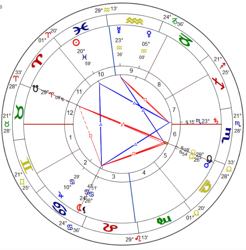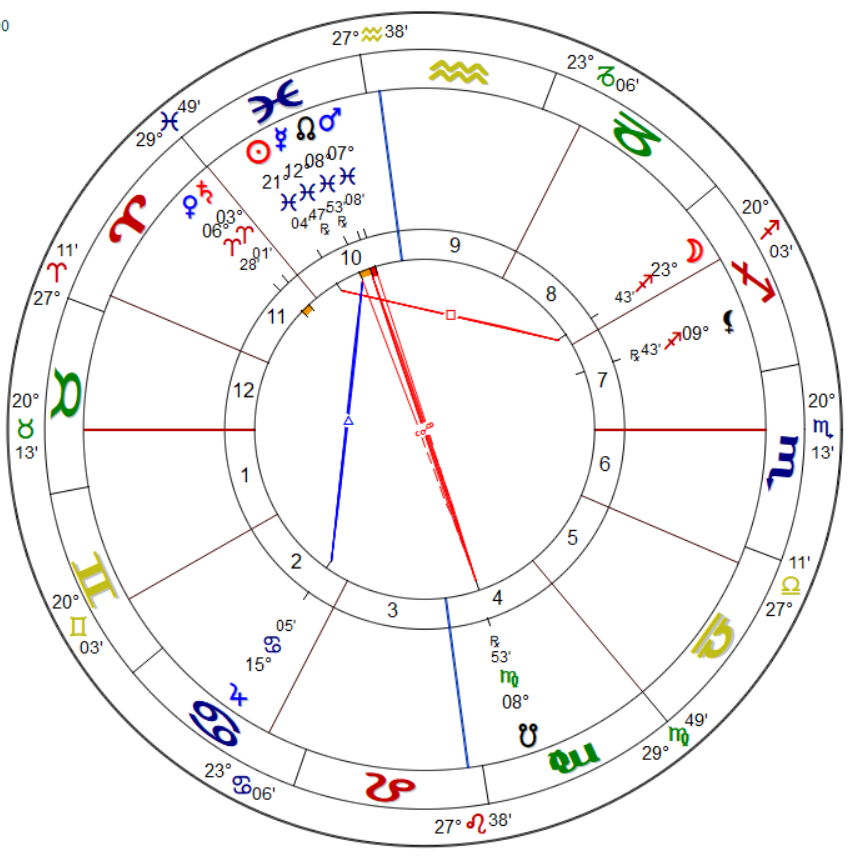Con los últimos estudios que realizados en mansiones lunares árabes me he puesto a revisar el zodiaco y ciertas impresiones han cambiado. Piscis tiene 3 partes: la primera muy rebelde, la segunda muy decidida y la tercera con el cansancio y reserva de los últimos grados. Justamente en el 20° es un Sol regido por la ambiciosa mansión Al Sadalkbiya, conocida por cultivar, profundizar y esconder conocimiento, todo para la conservación y cumulo. Vive entre la arrogancia y el servicio público. Muy a tono con ser presidente.
